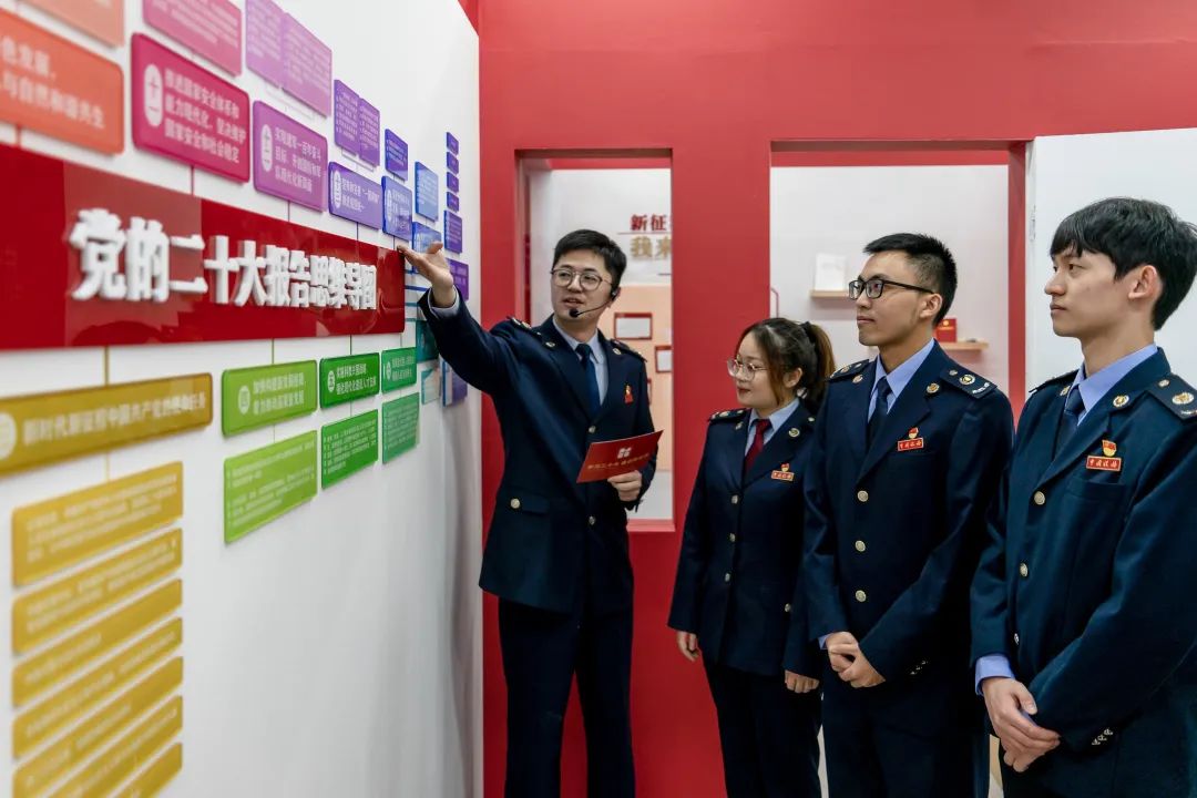 在宁波,鄞州区税务局以岗亭宣讲、学习角、理论小组讨论等形式,组织青年干部深入学习贯彻党的二十大精神。