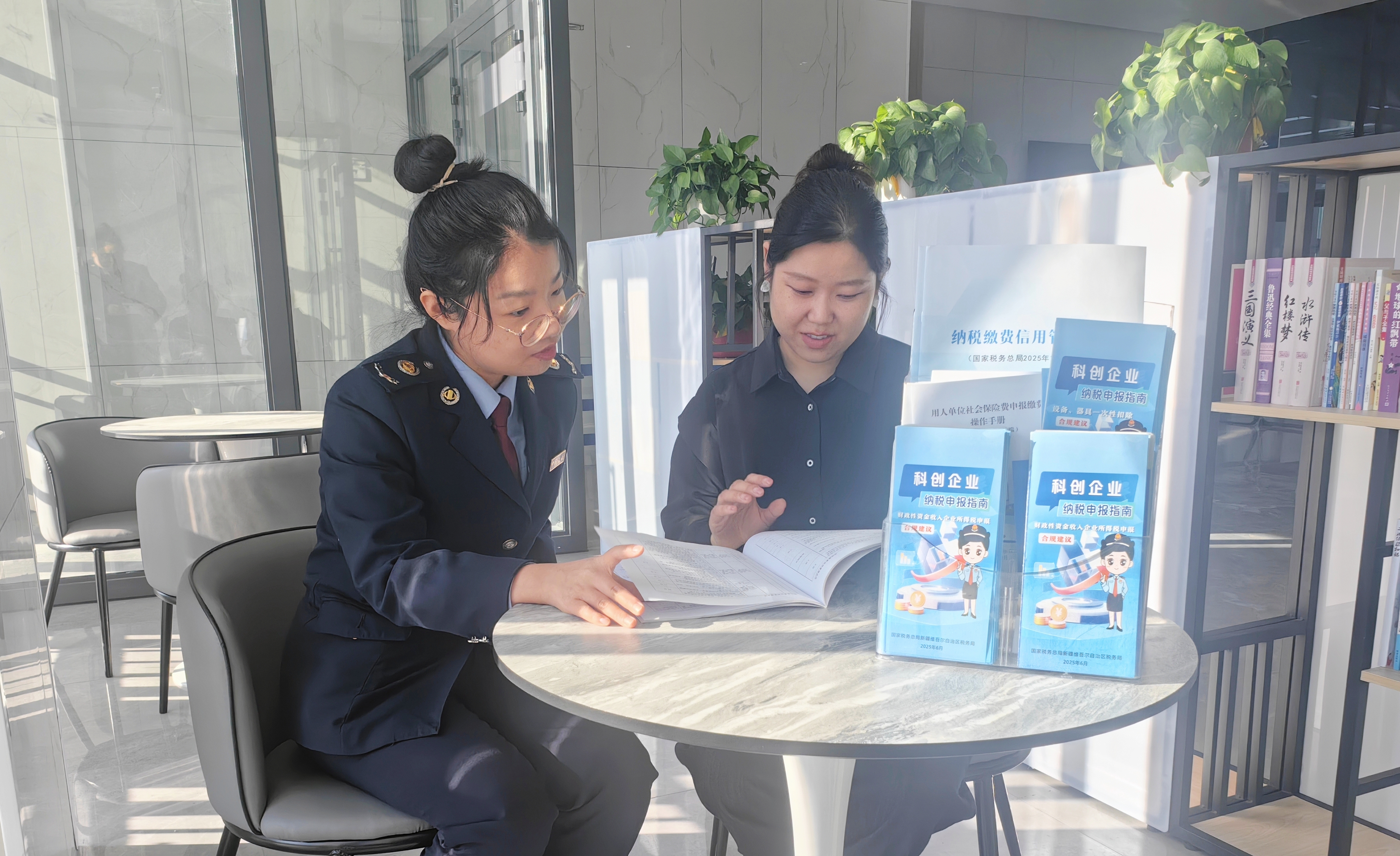 卡卡湾 福海县税务局干部为新开业户进行“一对一”办税指导,引导纳税人合规经营、诚信纳税。