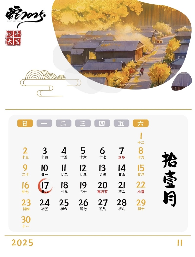2025年11月征期日历 时间:2025年11月3日 11:12