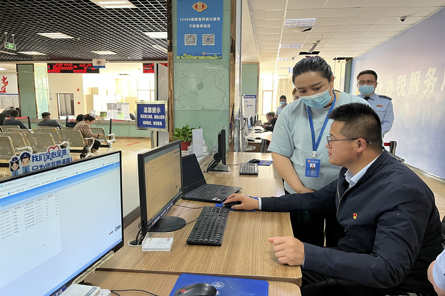 在莎车县税务局办税服务厅,逄子剑以“税费服务体验师”的身份,实地参观了网上办税服务厅、云端辅导区、综合窗口受理区等功能设施,全方位、多角度、零距离体验税费业务办理流程,详细了解税控设备发行、税费申报等业务操作规范,并通过操作自助办税设备、询问纳税人办税体验、现场观摩业务办理,逄子剑完成了“实操+问需+观察”于一体的全方位涉税事项体验。