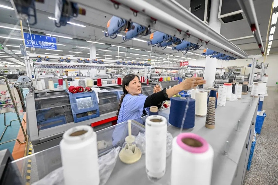 图为内蒙古鄂尔多斯羊绒集团有限责任公司的工人在生产车间工作。(新华社记者 连振 摄)