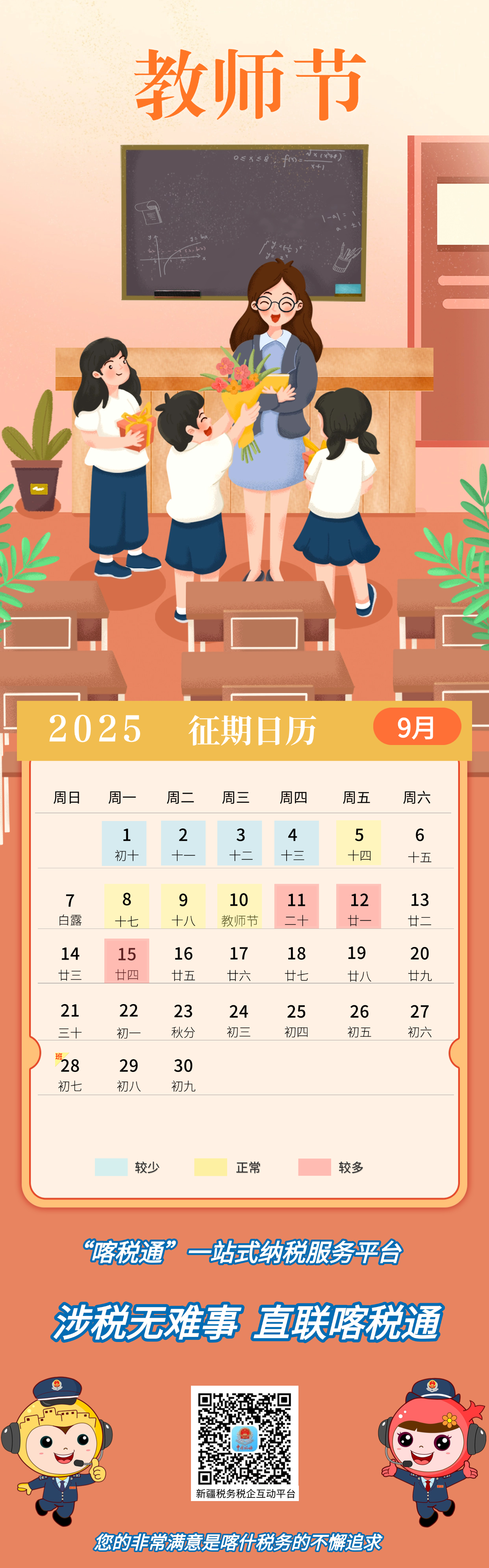 2025年9月征期日历 时间:2025年9月1日 17:20