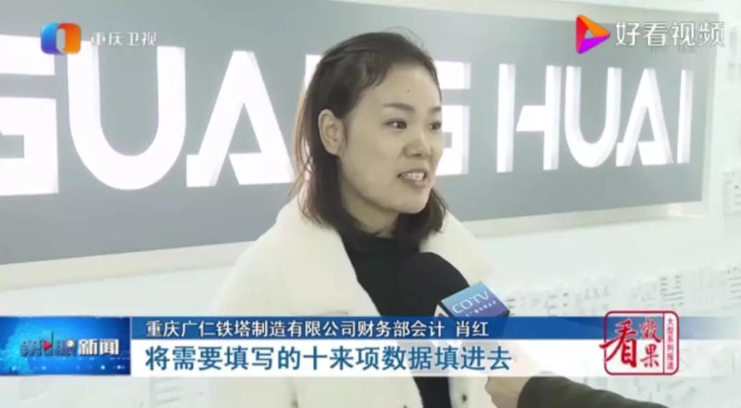 重庆广仁铁塔制造有限公司财务部会计肖红:“将需要填写的十来项数据填进去,系统会还原生成五张报表,也带出了几百项系统已有的数据,我们直接点确认就可以了,十月份的申报操作我们只用了不到十分钟。”