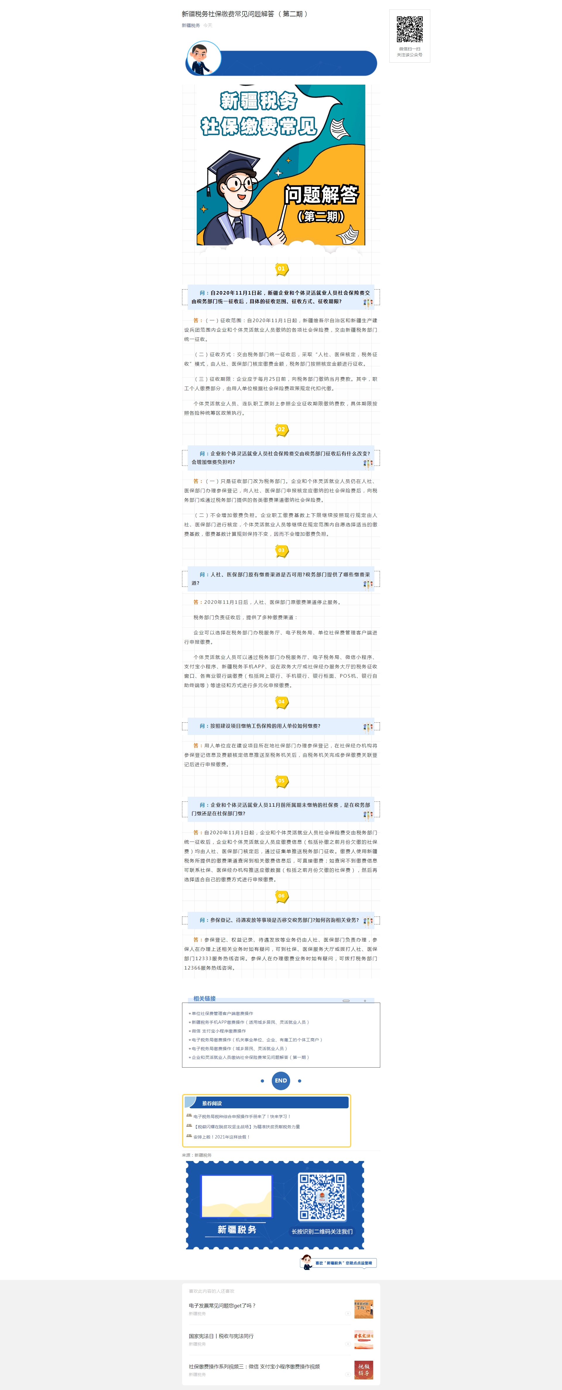 新疆税务社保缴费常见问题解答 (第二期) 时间:2020年12月9日 10:25