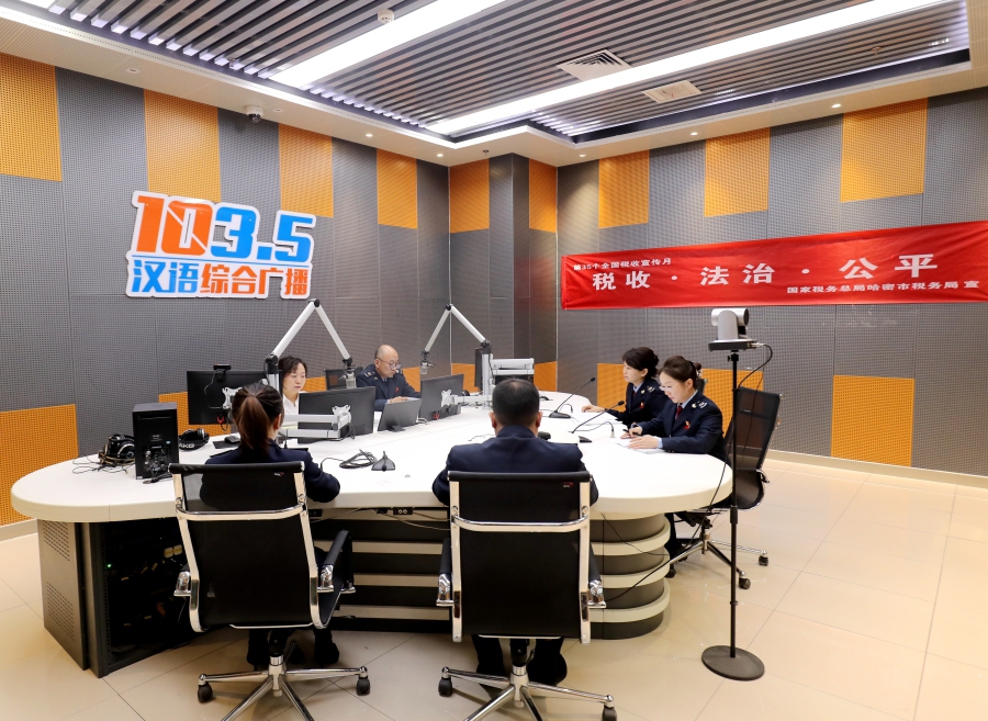 图为 哈密市税务局举办税收宣传月启动仪式暨“诚信纳税 合规经营”在线访谈