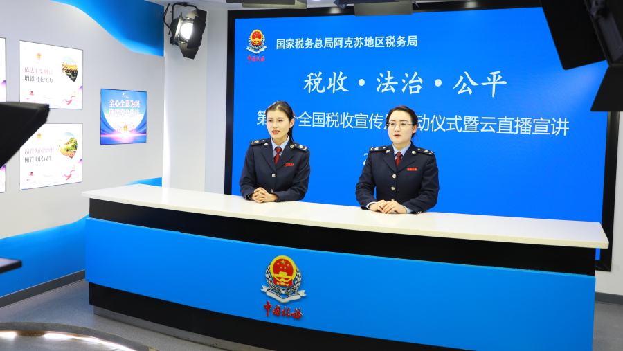 图为 阿克苏地区税务局联合政务服务中心以云直播宣讲形式启动税收宣传月