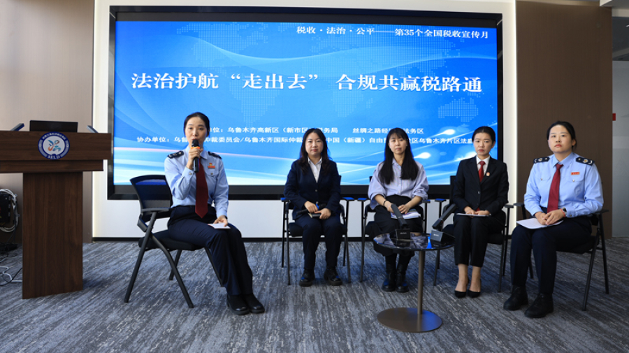 图为 乌鲁木齐高新区税务局联合司法、仲裁等部门开展“走出去”企业专场交流