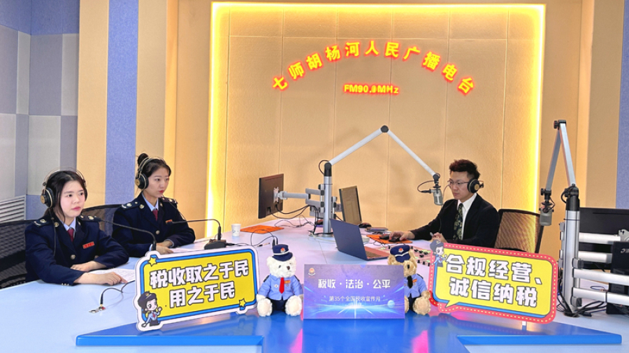 图为 胡杨河税务局举办第35个全国税收宣传月启动仪式暨线上热线900直播课