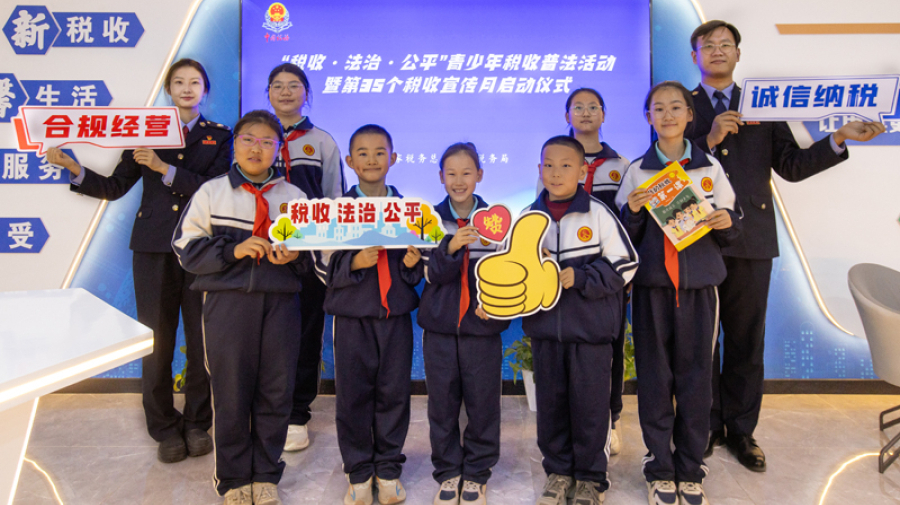 图为 新星税务局开展青少年普法活动暨第35个税收宣传月启动仪式